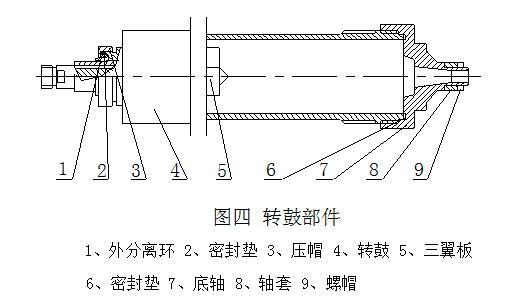 管式分離機主要由機身部件(見圖一),傳動部件(見圖一),主軸傳動部件(見圖二),漲緊輪部件(見圖三),集液盤部件(見圖一),轉鼓部件(見圖四),進液軸承座部件(見圖五)組成。