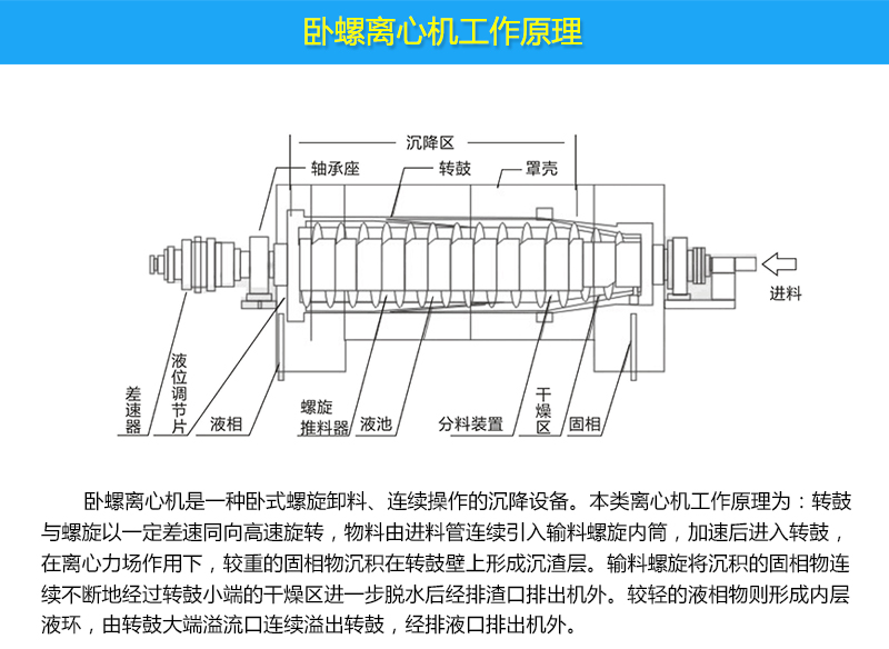 3.自動(dòng)化程度高:該機(jī)是連續(xù)進(jìn)料,連續(xù)出料,料液在離心力的作用下,固相粒子被螺旋不斷推向轉(zhuǎn)鼓小端排出,澄清的液相沿螺旋槽不斷從大端溢流口排出,從而實(shí)現(xiàn)了連續(xù)自動(dòng)操作。螺旋采用雙螺旋結(jié)構(gòu),推料效果好,適應(yīng)物料范圍寬。